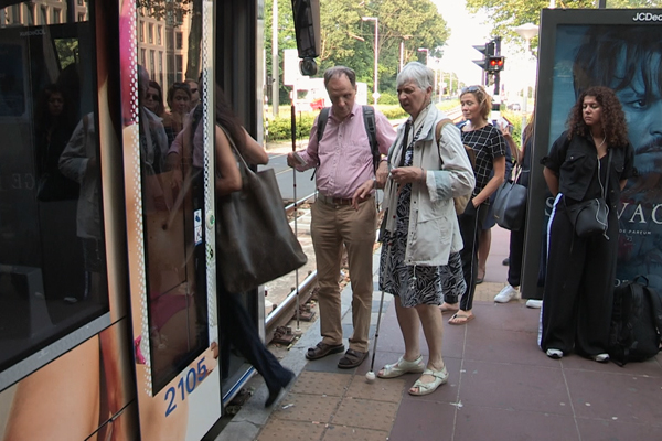 | OP DE TAST, Tussen Verbeelding en Herinnering Op weg naar de bushalte telt Ronald Polderman zijn stappen: ‘Na vijftig stappen kom ik op de hoek, dan kan ik oversteken. Aan de overkant moet ik opletten, daar staat een lantaarnpaal midden op het zebrapad. Eenmaal weer op de stoep, volg ik de rand van het fietspad, tel zeventig stappen en passeer een zijstraat. Een stap of tien verder vind ik een klein verschil in de tegels van het trottoir en als ik die lijn volg, kan ik keurig tussen alle obstakels voor de winkels doorlopen, behalve als er een fiets, brommer of een busje staat. Daarna houd ik rechts aan en volg de rand van het fietspad en de stoep tot aan de hoek, waar de ribbellijnen me bij de verkeerslichten brengen. Als ik geluk heb, maakt het verkeerslicht geluid, de tikker van de oversteekplaats dus. Zo niet, dan moet ik zoeken naar die paal en die staat helaas iets te ver van de ribbellijn af. ‘Waar is die paal?’ vraag je je dan af. Je moet immers op het knopje drukken om het geluid op te roepen. Na het oversteken, houd ik links aan, totdat ik de stoeprand van de bushalte voel. Ik volg de ribbelbaan tot een iets zachtere tegel: daar stopt de bus voor mij. Er is vaak zoveel verkeer dat ik hem niet hoor aankomen; ik moet dus goed opletten tot ik de warme lucht voel bij het opengaan van de deuren en dan stap ik in.’ ![]() Marianne en Ronald Polderman zijn een goed voorbeeld van hoe mensen met een beperking zich zelfstandig weten te redden in onze samenleving. Bijzonder aan het paar Polderman is dat ze in het verleden nog iets hebben kunnen zien; Marianne (72) verloor het laatste zicht als jong volwassene en Ronald (68) verloor het laatste licht vijftien jaar geleden. Ze hebben in hun herinnering de beelden van de wereld toen ze jong waren, maar ondertussen is er veel veranderd in de samenleving waarin ze zich dagelijks begeven. Een wereld die steeds drukker, lawaaieriger, individualistischer en bedreigender voor ze wordt. Ronald: ‘Het is alsof je voortdurend op je tenen moet lopen.’ De verhuizing naar Het Schild op de Veluwe biedt een beschermde woonomgeving voor blinden en slechtzienden maar stelt ze ook voor een nieuwe uitdaging: Marianne en Ronald zullen stap voor stap, op de tast een nieuwe wereld moeten ontdekken. Op de tast, tussen verbeelding en herinnering, het verhaal over een blind echtpaar dat zich op de tast een weg zoekt in de wereld van de zienden. | |